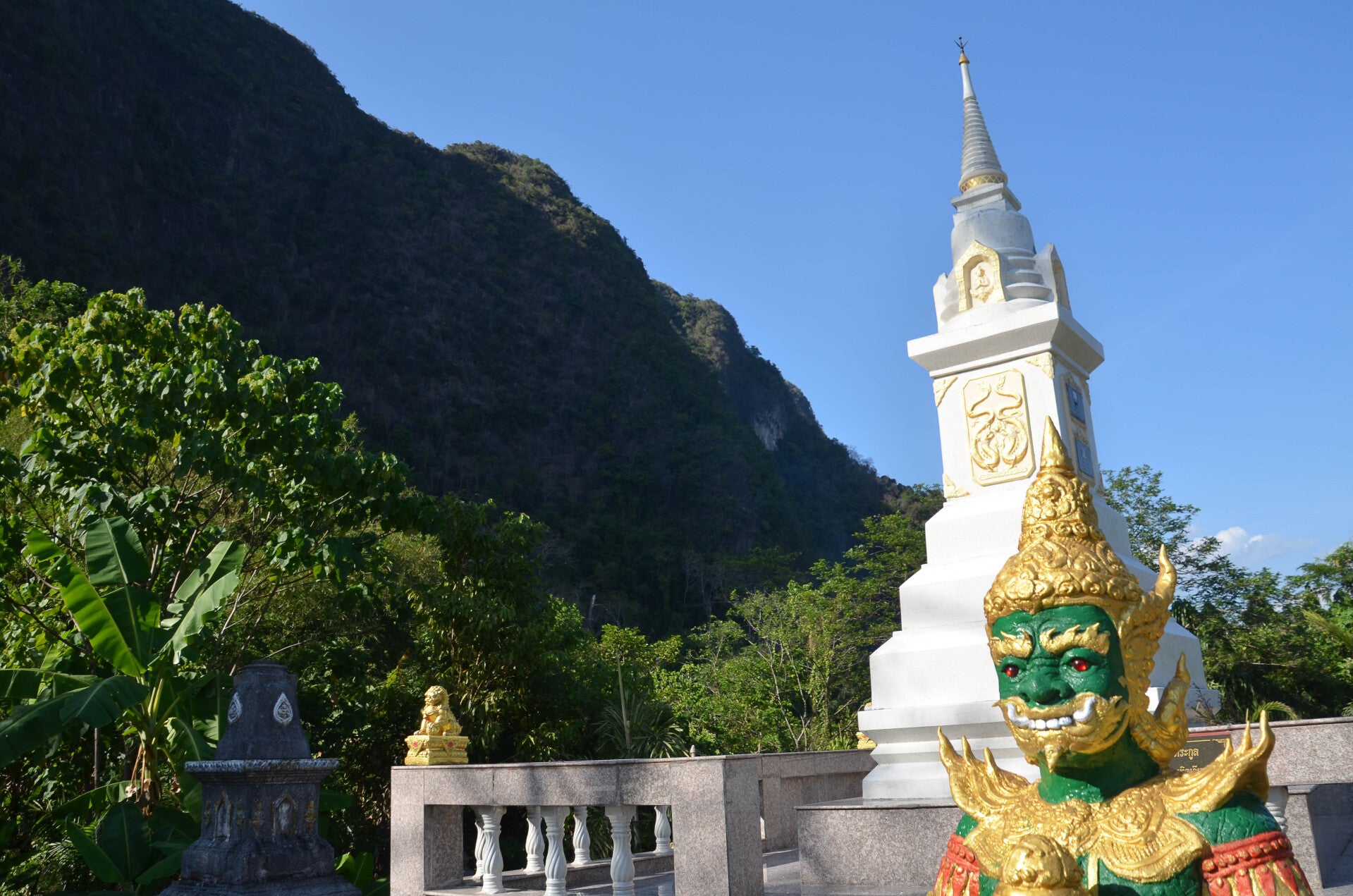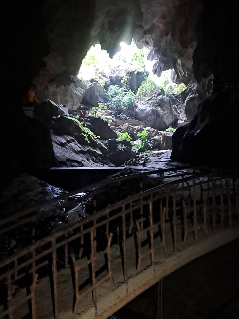 Un escalier mène à un petit sentier qui serpente à travers la grotte, traversant de petits ponts qui enjambent une rivière souterraine. Comme c'est souvent le cas en Thaïlande, cette grotte abrite plusieurs statues de Bouddha. Il y fait très sombre, ambiance très particulière.