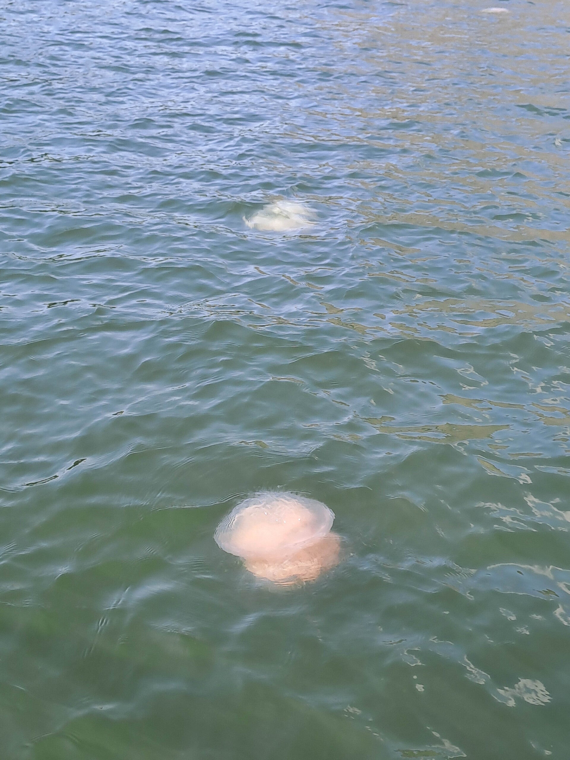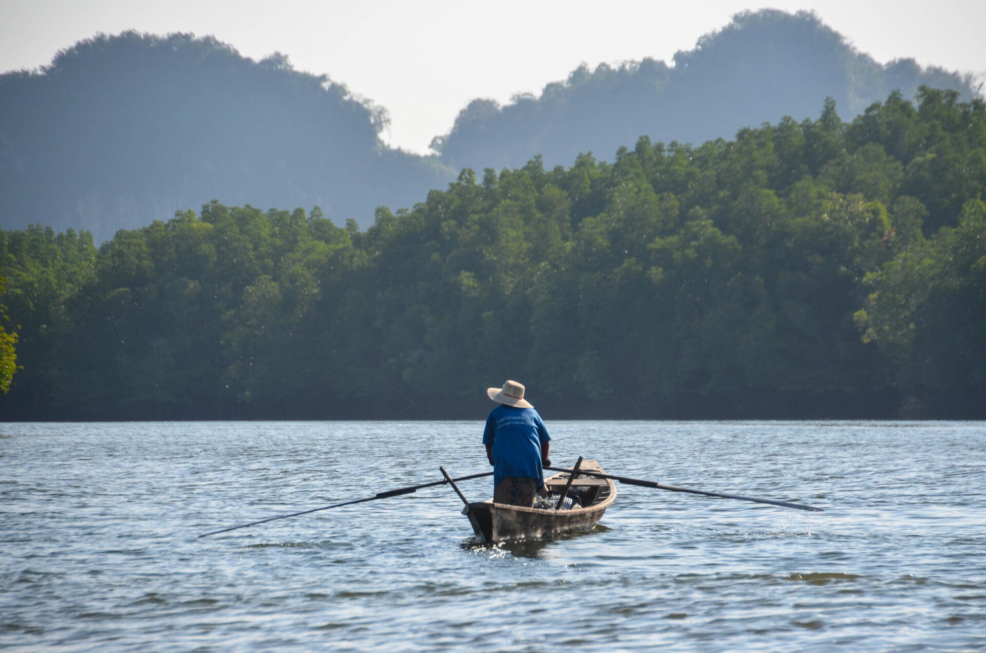 Dans la baie les pêcheurs s'activent. Ici c'est la pleine saison de la pêche à la méduse. Elles sont énormes et très appréciées des Thailandais.