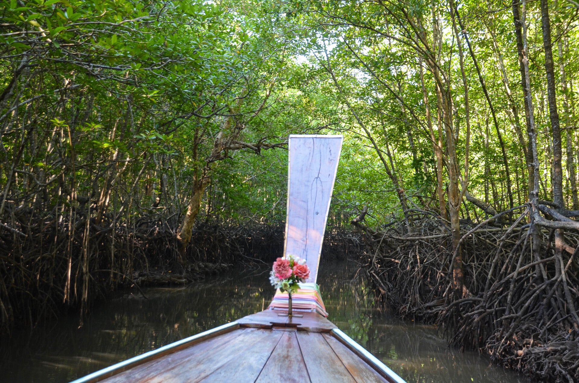 Pour rejoindre la baie, nous traversons une zone de mangrove, évitant le canal principal. Il n'y a personne, c'est vert, calme, impressionnant dans les sections les plus étroites.