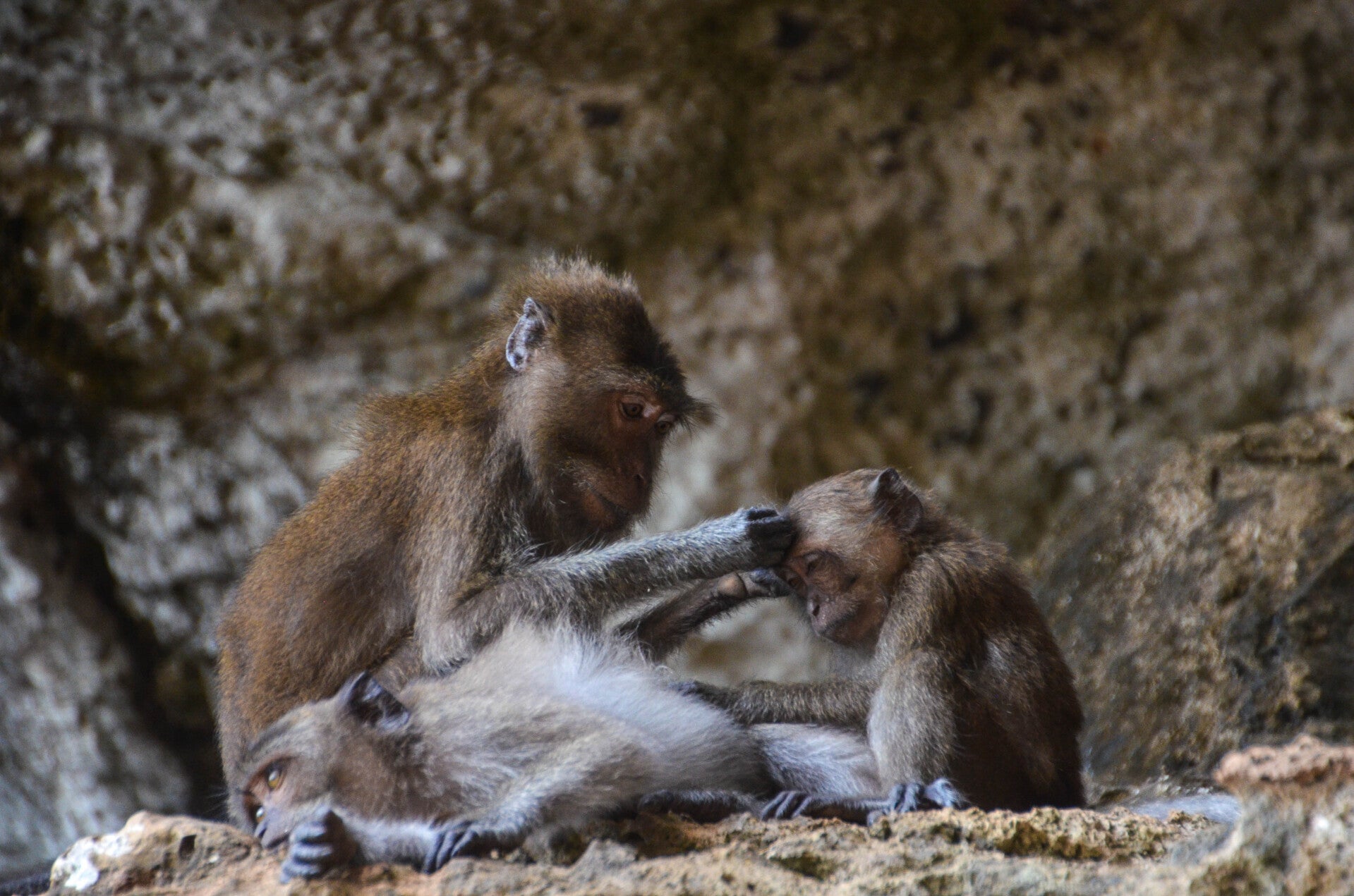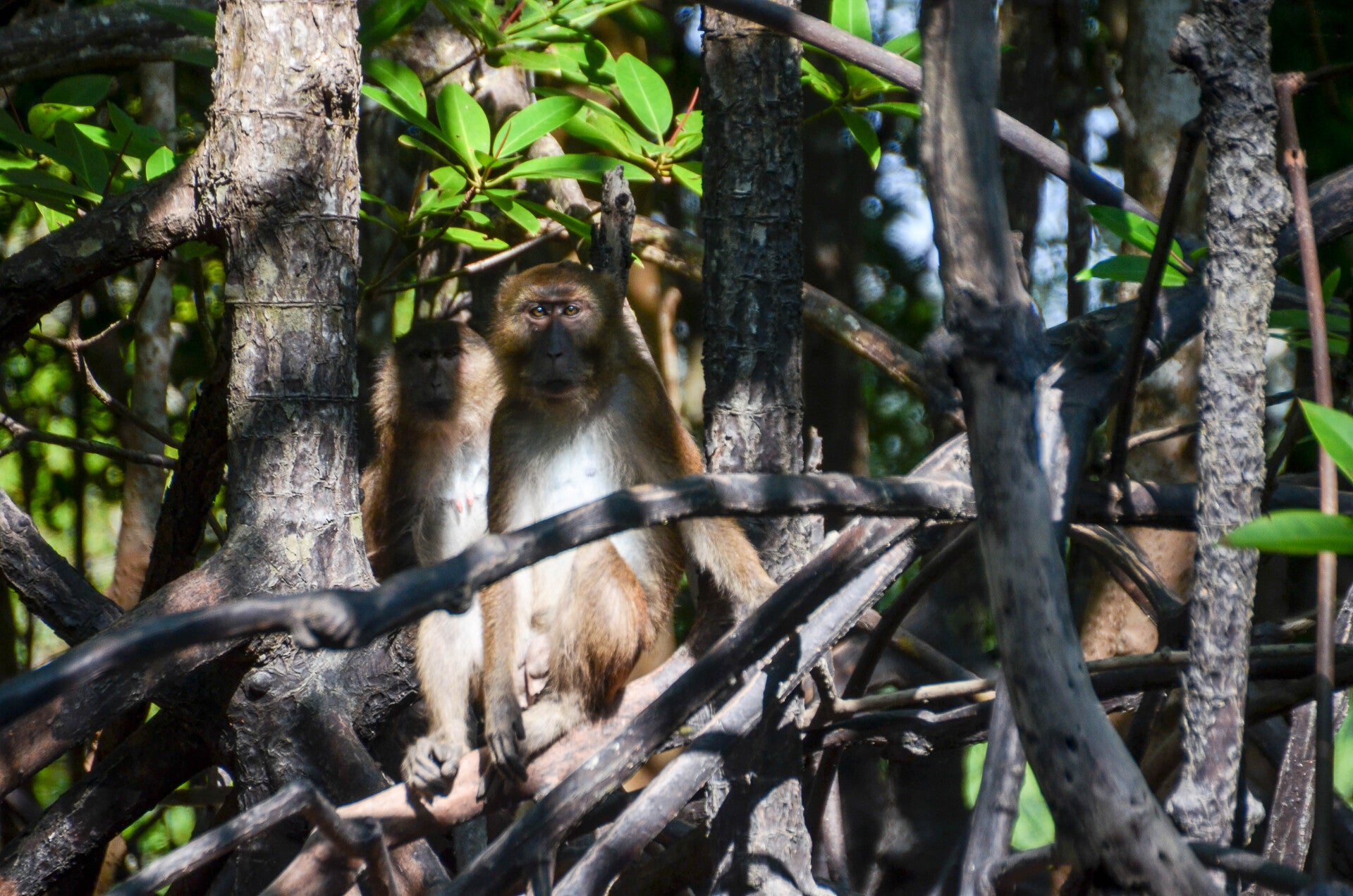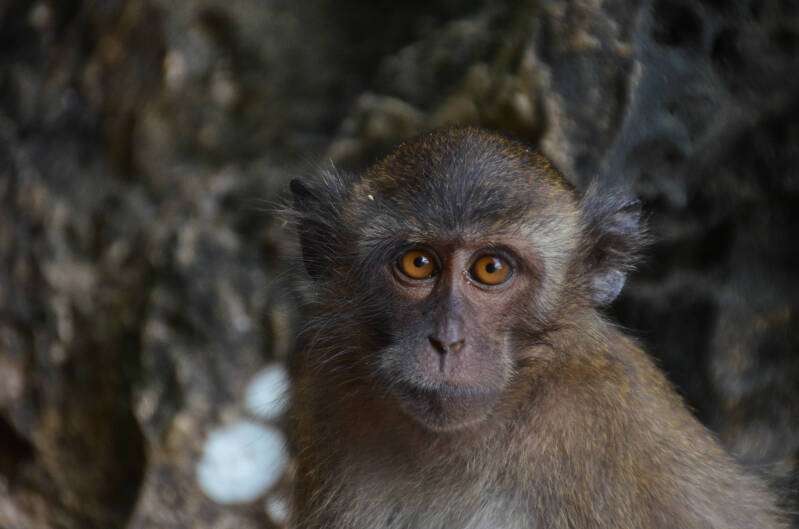 Nous débarquons sur la minuscule plage de Ko Phanak. Les singes sont au rendez-vous. Pas agressifs, ils se prennent presque la pose.