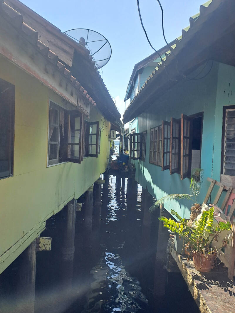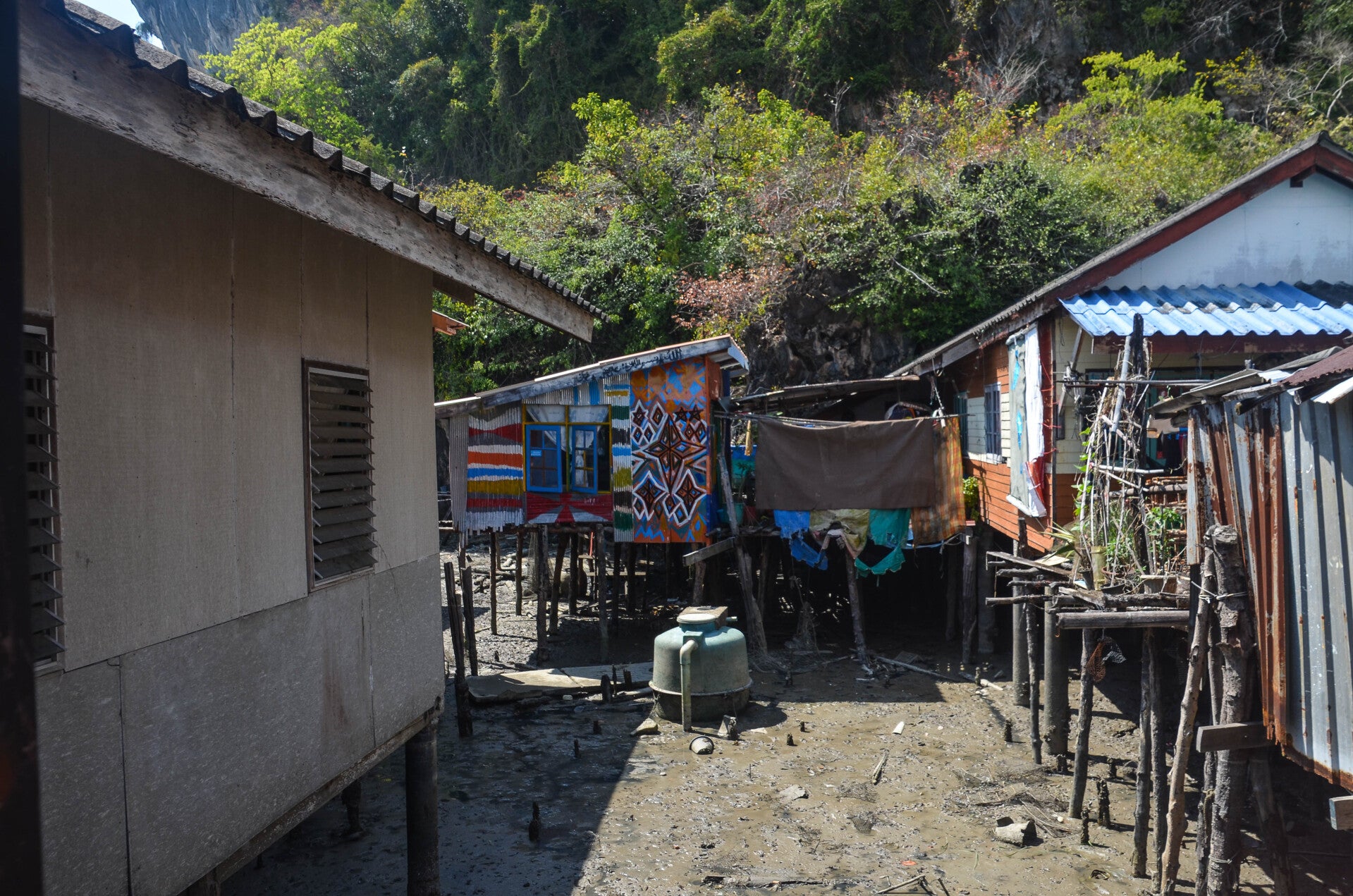 Le port est très local, avec quelques habitations sur pilotis, quelques longtails prêts à partir.