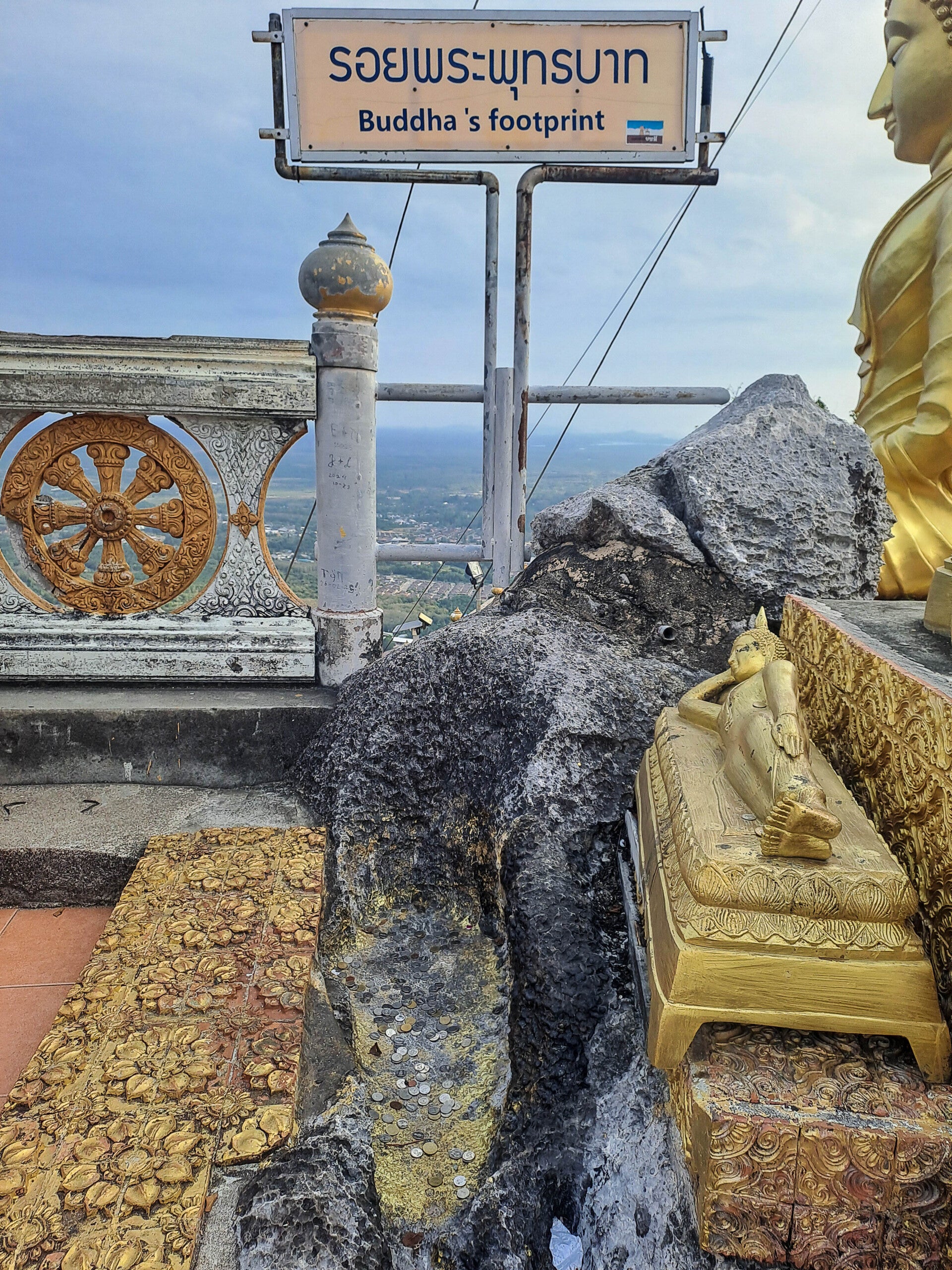 De son vrai nom, Phukhao Phra Maha Phothisat Guan Yin. Pour y accéder, un escalier principal assez raide nous attendait, avec des marches plutôt étroites. Au fil de l'ascension, plusieurs paliers sont ornés de statues, notamment des représentations de Bouddha dans différentes postures, des éléphants blancs, la déesse chinoise, Guan Yin, et des sampans traditionnels. L'intérêt ne réside pas uniquement au sommet. À l'arrivée, un majestueux Bouddha doré surplombe la vallée, tandis qu'en dessous se trouve une plateforme accueillant des statues très réalistes de 3 moines vénérés. La vue depuis cet endroit est tout simplement splendide.