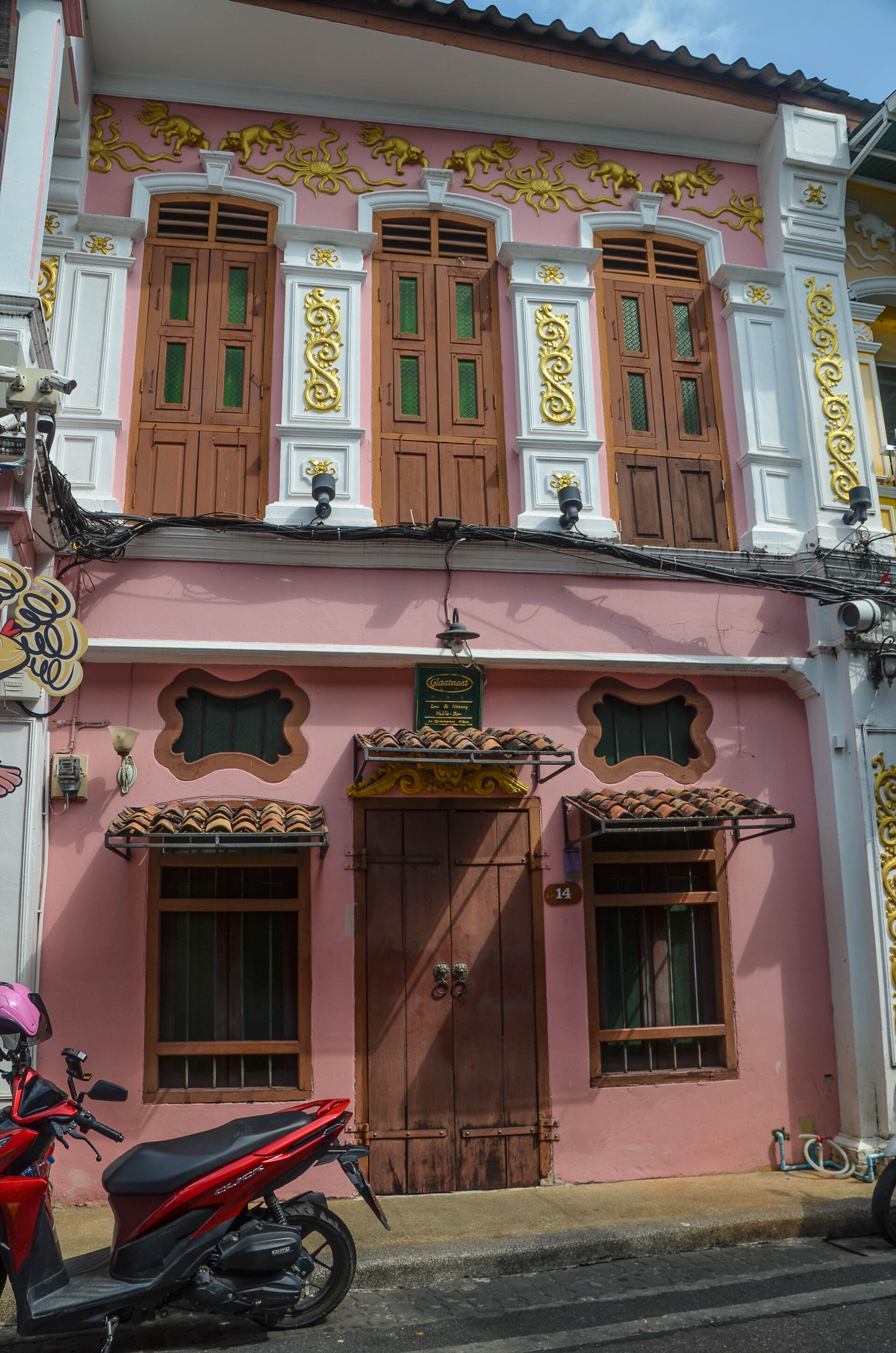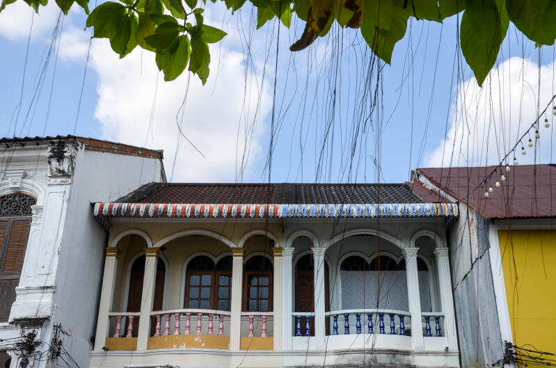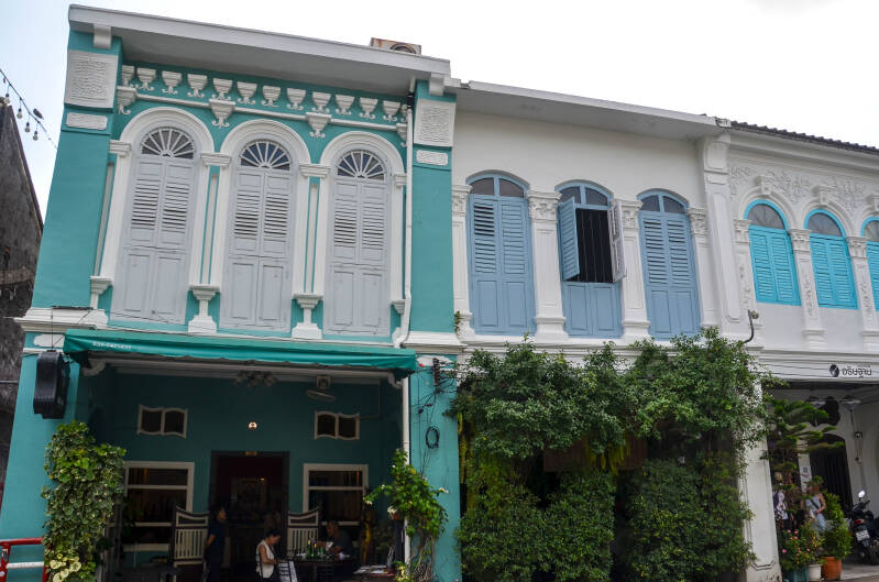 Les shophouses de Phuket sont célèbres pour leur style sino-portugais. C'est un mélange de cours intérieures (pour la lumière et l’air) et de décors traditionnels chinois, et de façades colorées, motifs floraux ou fenêtres à arches.