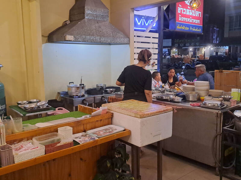 Pour le diner on ne peut pas faire plus local. Etant un peu à l'écart du secteur touristique de Old Town, il n'y a pas vraiment de restos, mais plutôt des petites cantines où seuls les Thais vont manger. Ça nous va très bien, à condition qu'on nous explique le menu, rédigé exclusivement en thai... On s'en sortira avec des noodles, excellentes.