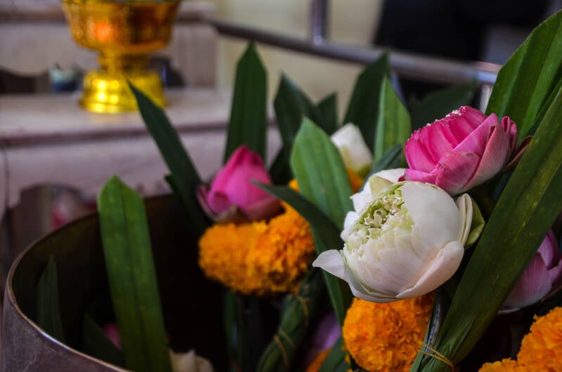 Le Viharn est le plus ancien édifice du Wat. C'est la salle des sermons où les fidèles viennent inlassablement recouvrir d'or les statues des 2 moines vénérés ici.