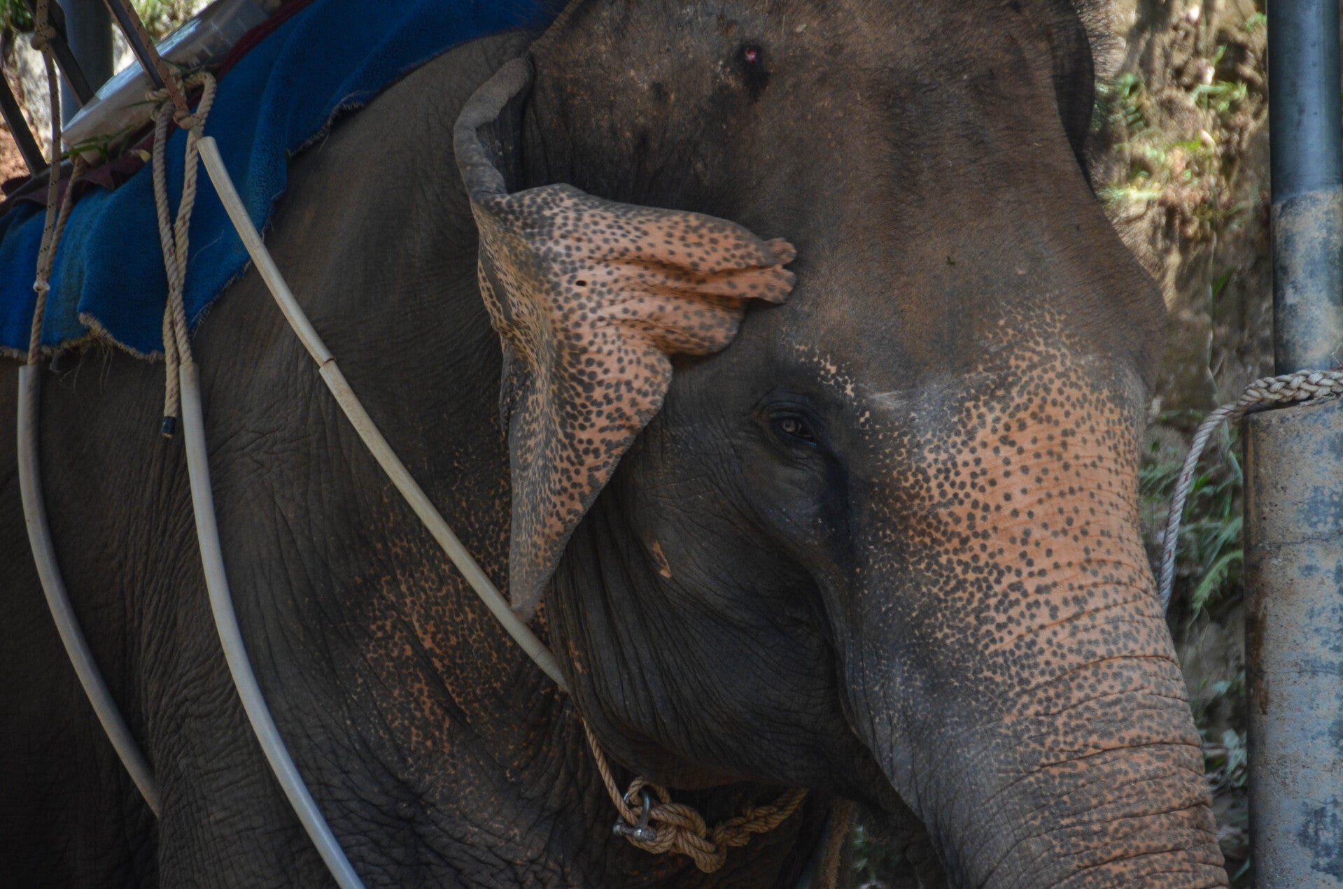 En route pour Big Buddha, nous tombons par hasard sur un camp pour éléphants. Nous constatons qu'aucun animal n'est en liberté. Ça n'est de toute évidence pas le meilleur endroit pour découvrir ces pachydermes.