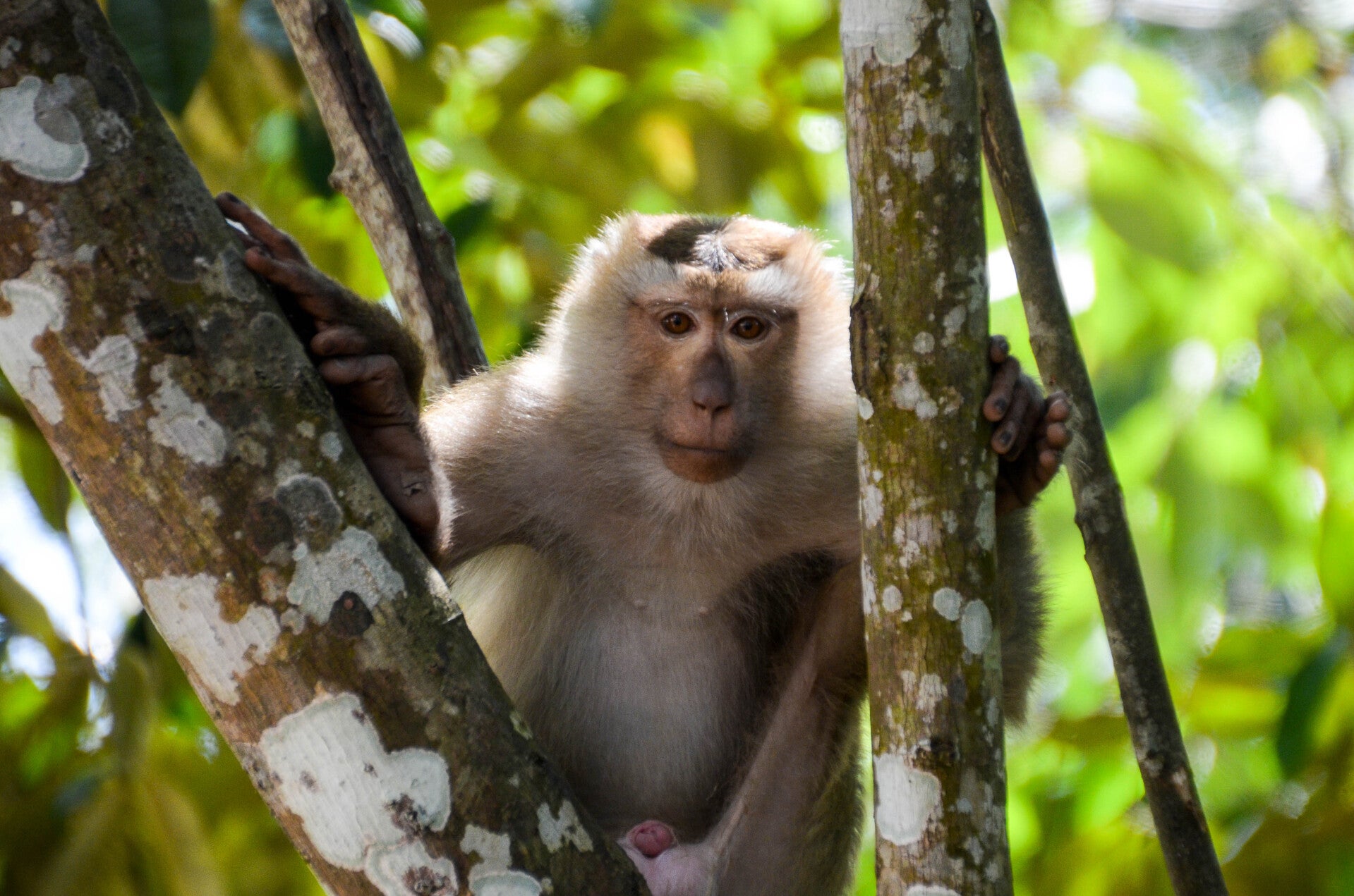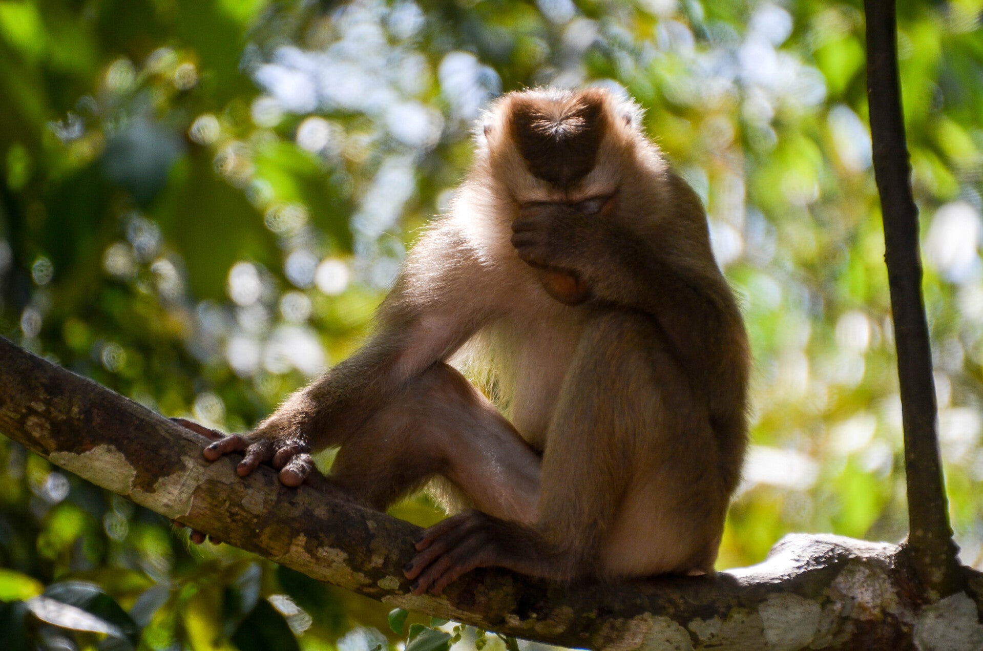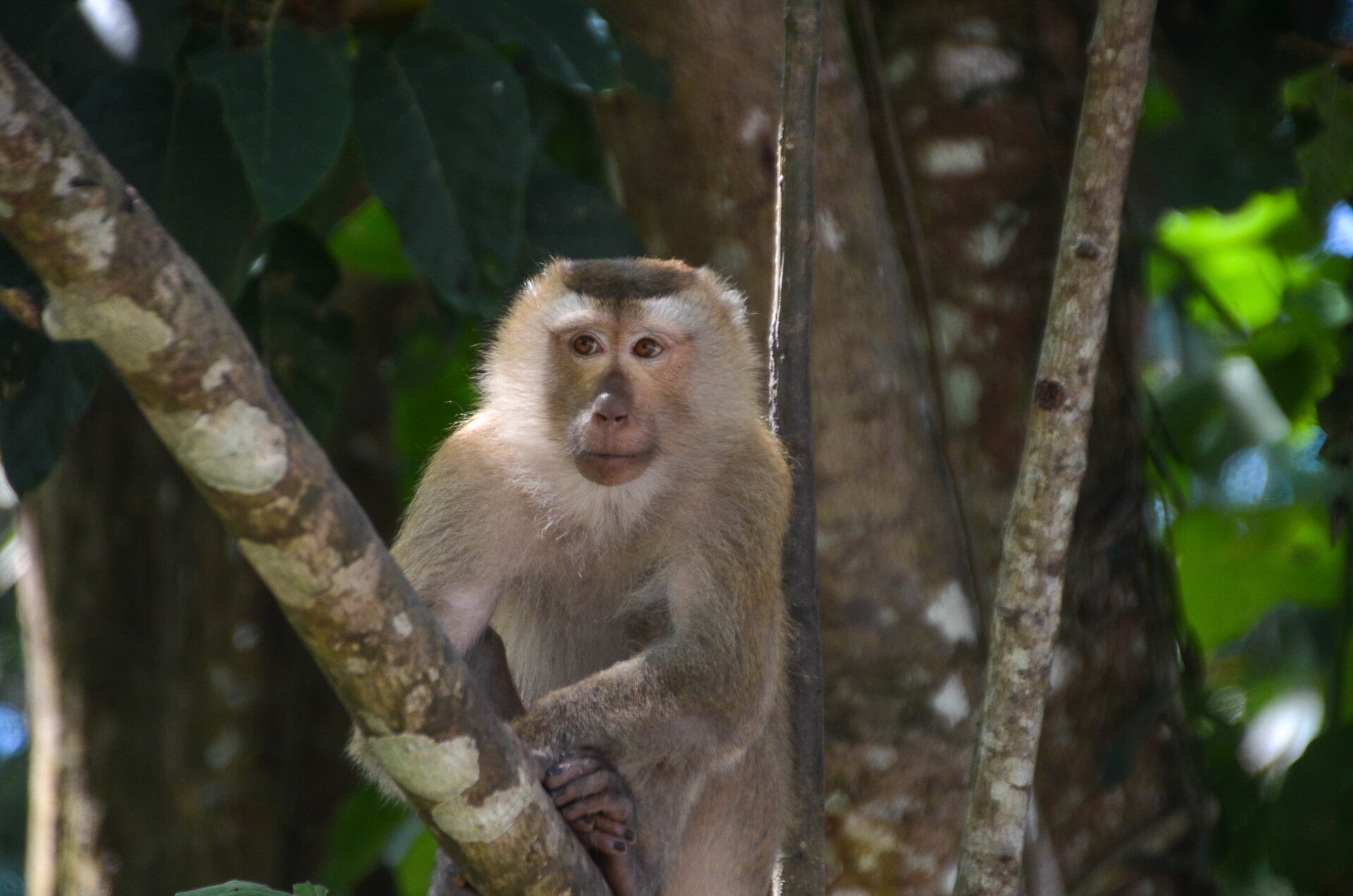 Le long du parking, dans les arbres, des familles de singes guettent la moindre opportunité de restauration rapide.